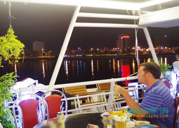 Tour ăn tối trên tàu rồng sông hàn bắt đầu xuất bến đưa du khách du ngoạn trên sông hàn. Ngắm cảnh sông hàn về đêm bên những người thân yêu trong một bữa tiệc tối với không gian lung linh đầy mầu sắc của những cây cầu, hòa với đó là những làn gió mát dịu mang hương vị của sông và biển sẽ khiến cho bữa tiệc của du khách thêm phần đậm đà và đặc biệt hơn.